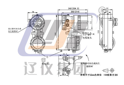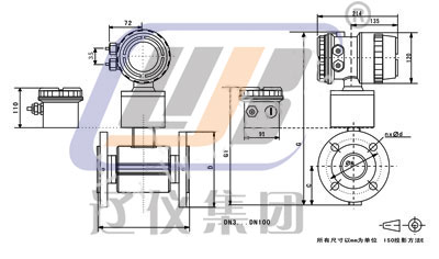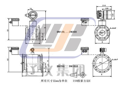 2)接地方式为接地电极(标准配置)时,DN125-1000口径,尺寸L不变。